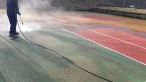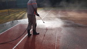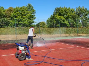 Nettoyage adapté pour béton drainant, résine sportive et terre battue