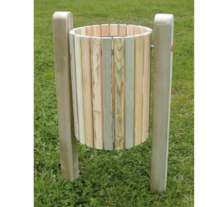 Cette corbeille en acier peut être fixée par scellement direct ou sur Serrubloc® pour bornes pour la rendre amovible.