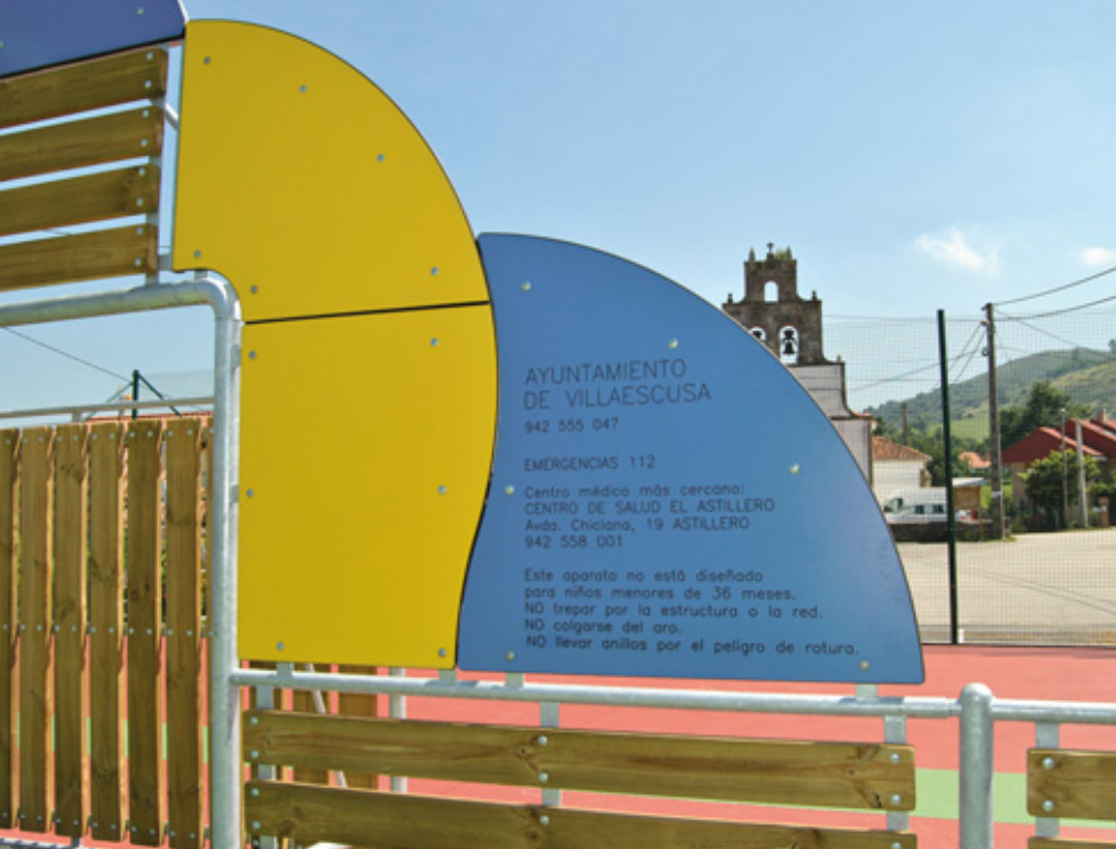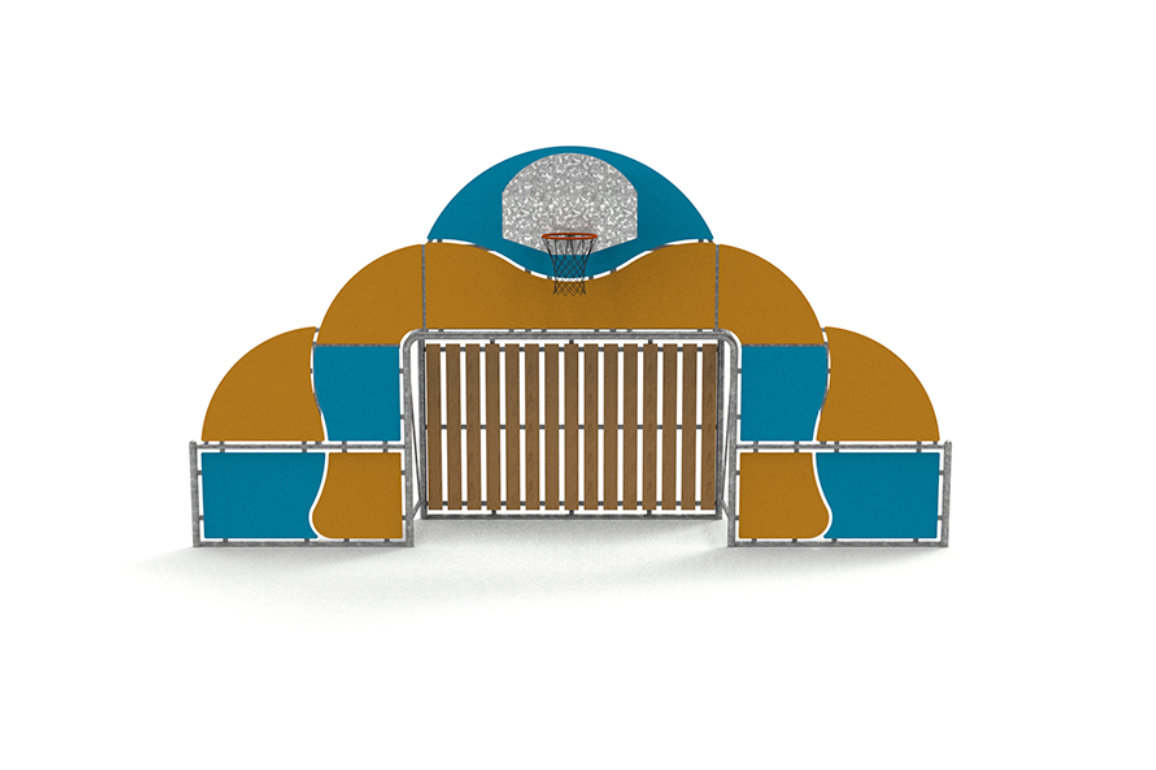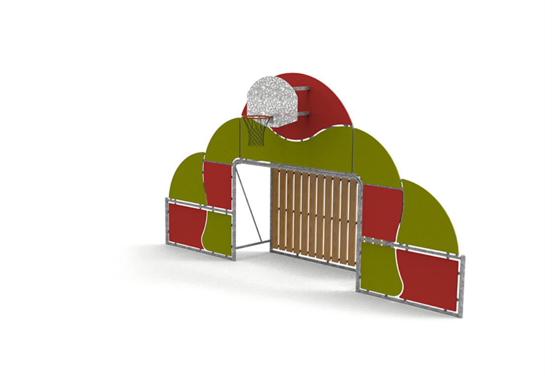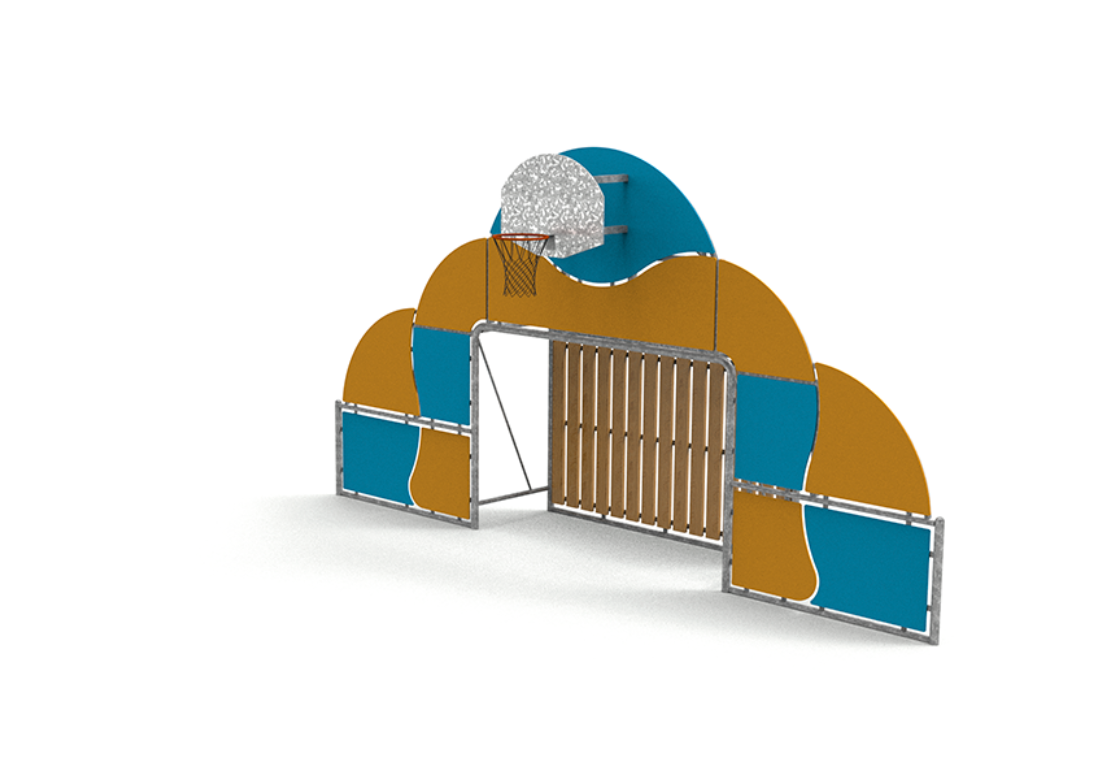 La structure du panier de basket est faite de tubes galvanisés rectangulaires de 80 x 40 x 4 mm et de plaques galvanisées anti-vandalique avec anneau d’anneau en acier massif Ø= 20 mm peint en poudre (DP041). Le filet est composé d’une chaîne galvanisée de Ø= 4 mm.