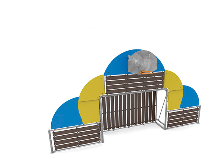 La clôture latérale est composée de tubes galvanisés de 2 1/2″ E=3,2 mm pour les poteaux, et de 1 1/2 E=2,9 mm pour le reste des tubes. Il est fabriqué en lattes de bois technologiques de 145 x 45 mm ; tous assemblés avec des DIN603 M10x70 galvanisés et DIN603 M10x30, un bouchon anti-vandalisme, une rondelle et un écrou auto-verrouillant. La hauteur de la clôture est de 950 mm.