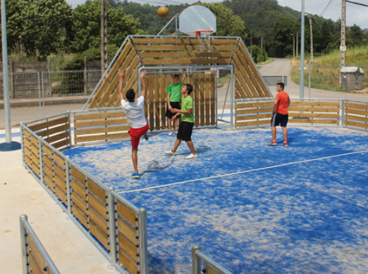 Le terrain multisport, certifié selon la norme EN 15312 pour le matériel sportif à accès libre, est un espace polyvalent (buts et entrée inclus), entièrement entouré de clôtures en métal galvanisé et de bois, où il n’y a aucun risque d’enfermement.