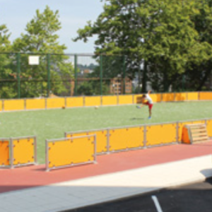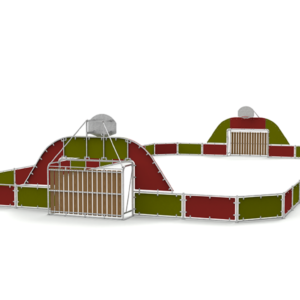 La clôture latérale est composée de tubes galvanisés de 2 1/2″ E=3,2 mm pour les poteaux, et de 1 1/2 E=2,9 mm pour le reste des tubes. Il est fabriqué en polyéthylène de 16 mm d’épaisseur ; le tout est assemblé par une vis galvanisée spéciale, un anti-vandalisme, une rondelle et un écrou auto-verrouillant. La hauteur de la clôture est de 950 mm.