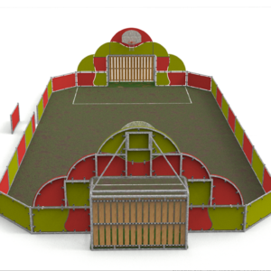 La clôture périphérique est composée de tubes galvanisés de 2 1/2″ E=3,2 mm pour les poteaux, et de 1 1/2 E=2,9 mm pour le reste des tubes. Il est fabriqué en polyéthylène de 16 mm d’épaisseur ; le tout est assemblé par une vis galvanisée spéciale, un anti-vandalisme, une rondelle et un écrou auto-verrouillant. La hauteur de la clôture est de 950 mm.