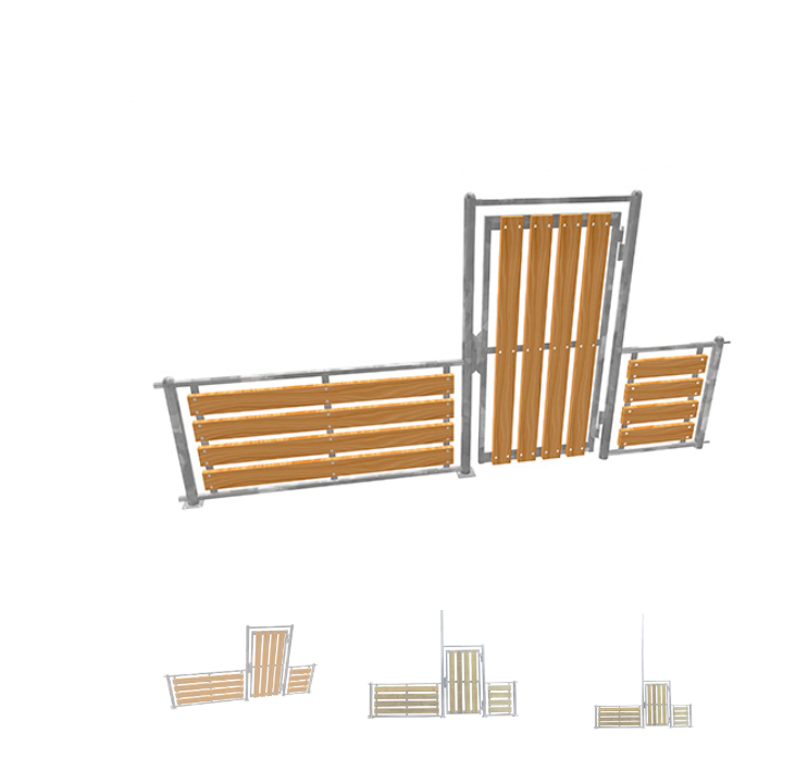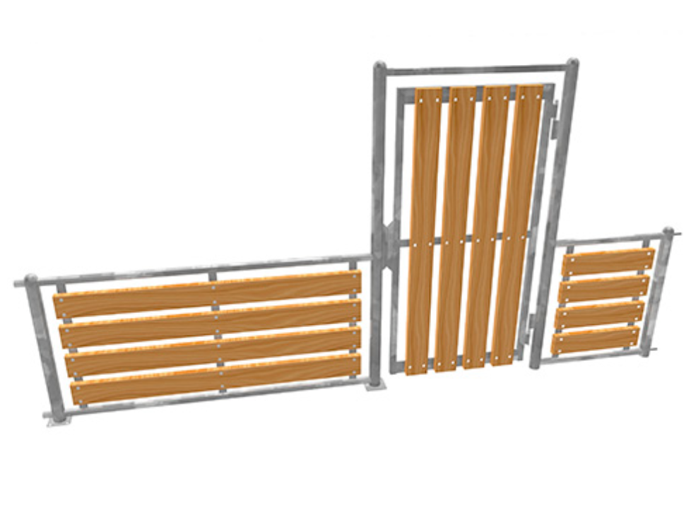 Module de porte latérale pour circuit multisports. Espace de passage : 0,93 m. Acier galvanisé et bois autoclavé de classe IV.