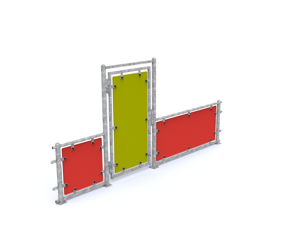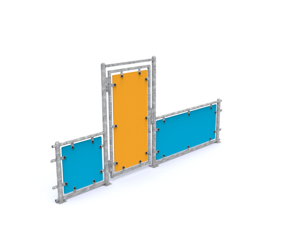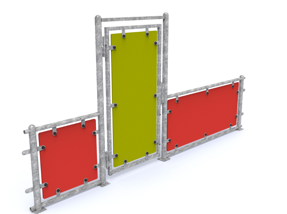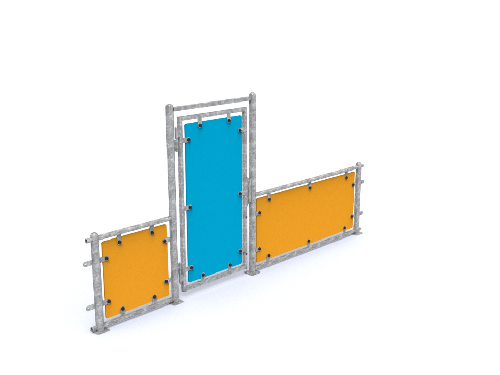Objectif du module de porte latérale pour circuit multisports. Espace de passage : 0,93 m. Acier galvanisé et polyéthylène.