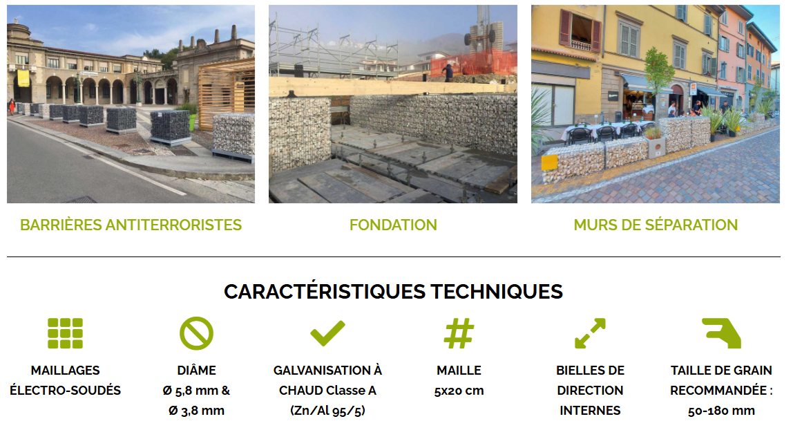 Ces structures métalliques, remplies de pierres soigneusement sélectionnées, offrent une solution à la fois esthétique, robuste et durable pour l’aménagement extérieur. Idéals pour la réalisation de murs de soutènement, clôtures, murets décoratifs ou éléments paysagers, les gabions s’intègrent parfaitement dans des projets contemporains comme plus traditionnels.