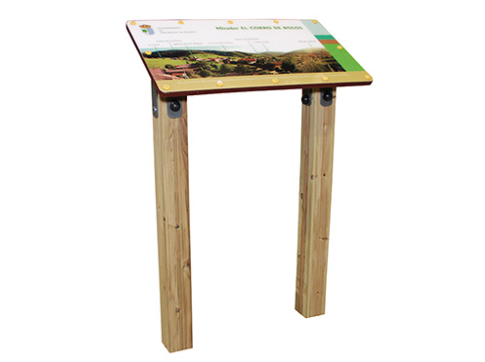 MI022 Pupitre d’orientation bois, sur pieds, plateau incliné et panneau en méthacrylate, 89×42 cm. 470 € HT
