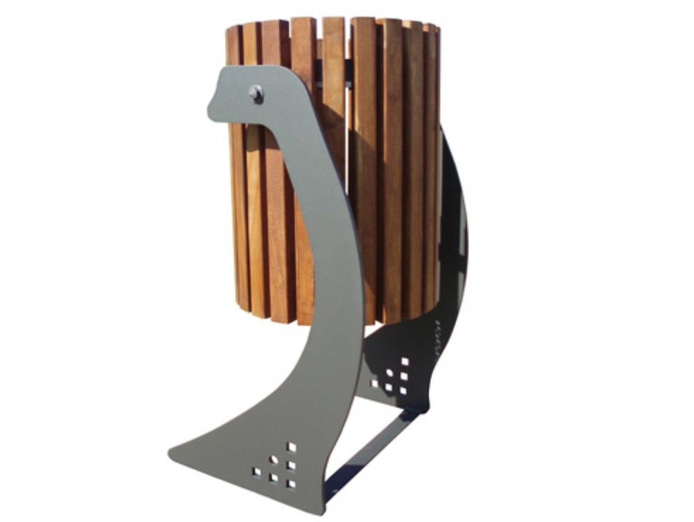 MP063,  Corbeille LÁBARO basculante, en acier laminé et bois tropical, ronde,