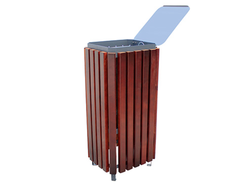 MP155 Poubelle, en bois tropical et tôle en acier galvanisé, rectangulaire, avec