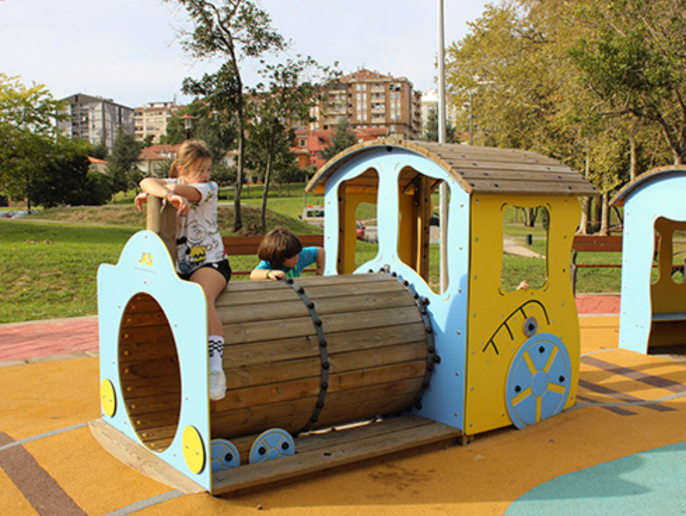 PM633 : 2,72 x 1,53 x 1,71 m. 200 kg. LOCOMOTIVE avec tunnel, toit et ENSEMBLE COULISSANT.