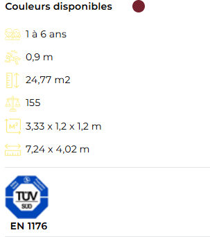 PM666 1 à 6 ans 0,9 m 24,77 m2 3,33 x 1,2 x 1,2 m 7,24 x 4,02 m