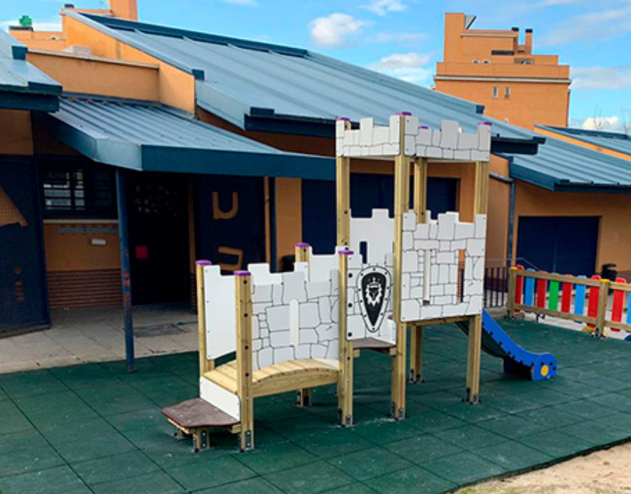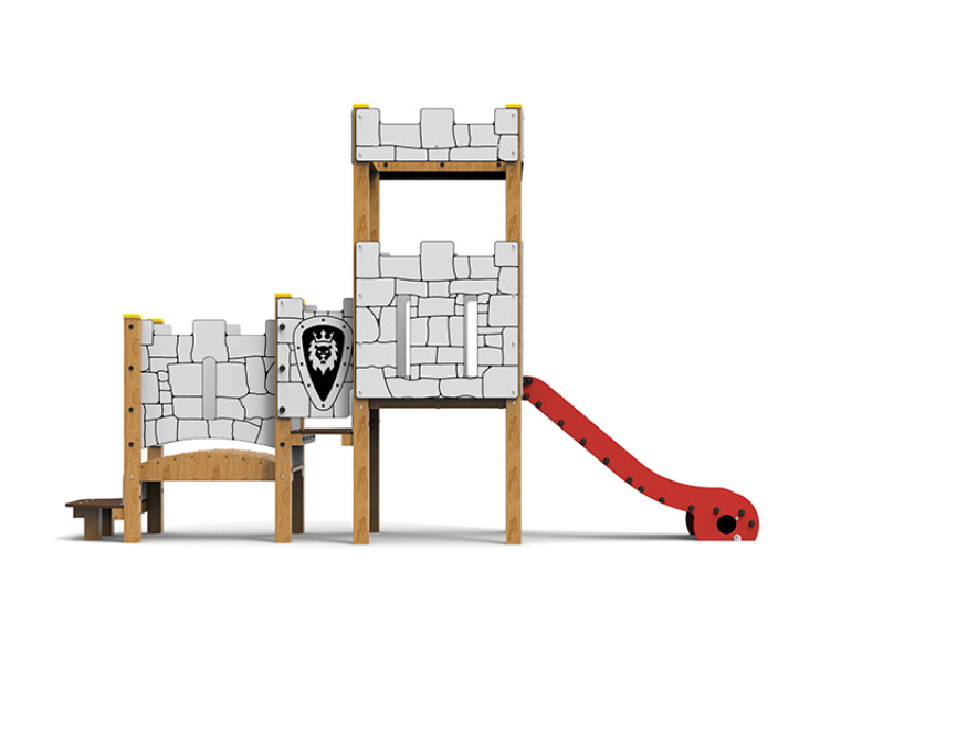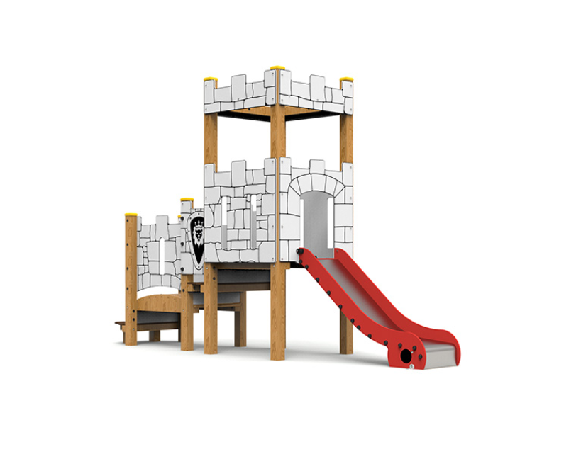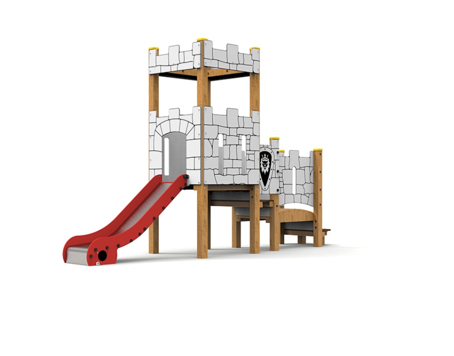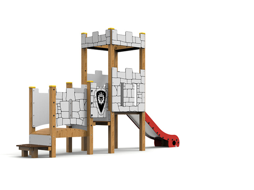 tour crénelée, accès courbe au pont et coulissante de H= 0,90 m.