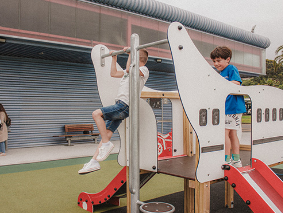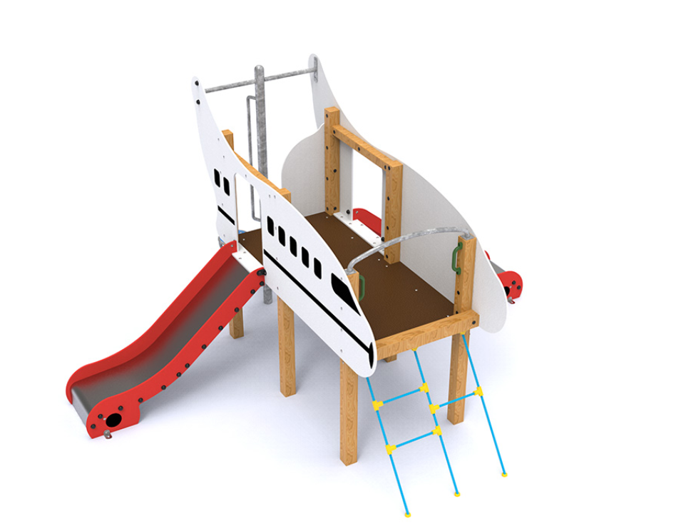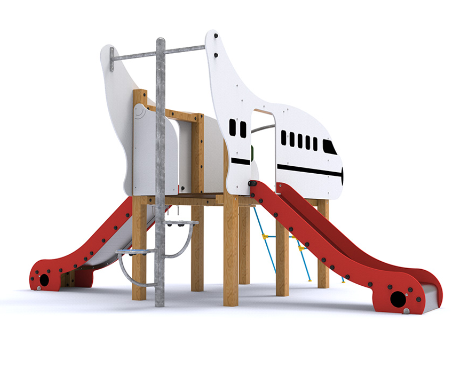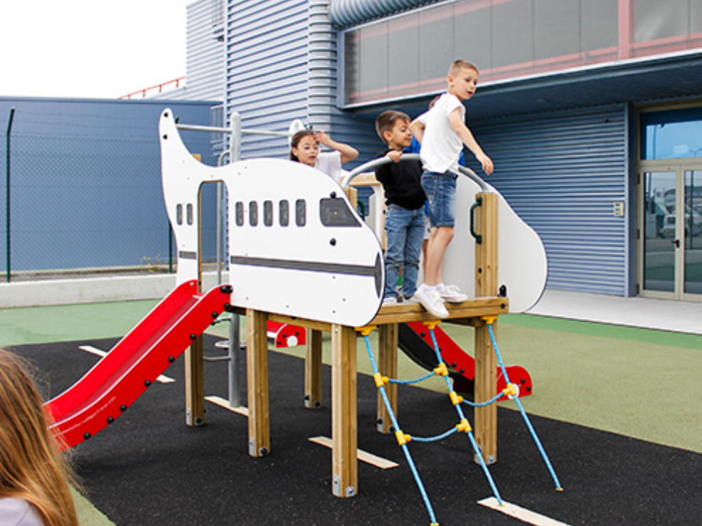 2 tours de 1 m, échelle en pétale, échelle à corde et 2 glisseurs H = 0,90 m.