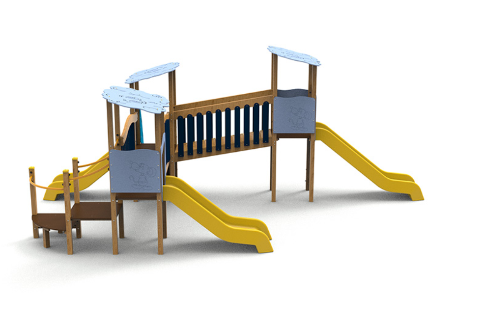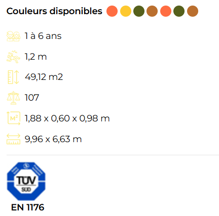 - 3 toboggans : 2 avec une hauteur de départ de 0,90 m et 1 avec une hauteur de départ de 1,20 m