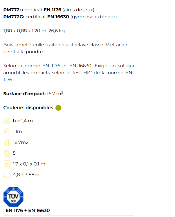 PM772: certificat EN 1176 (aires de jeux).