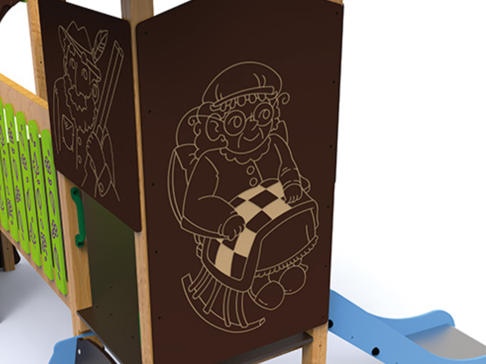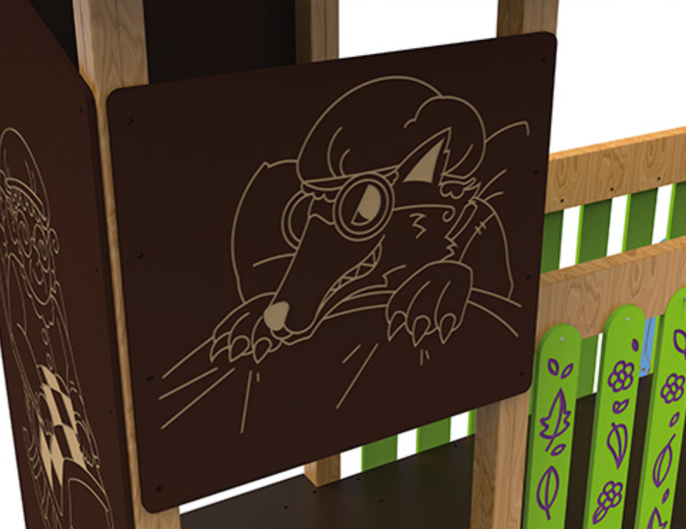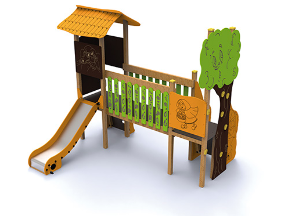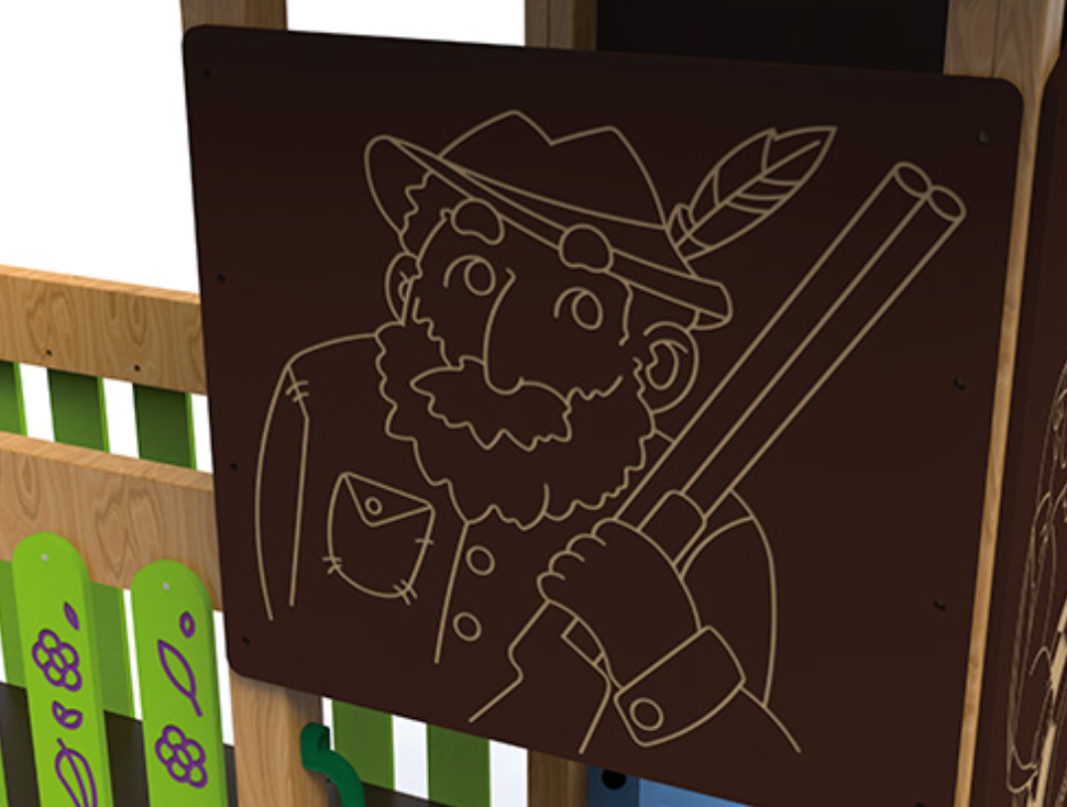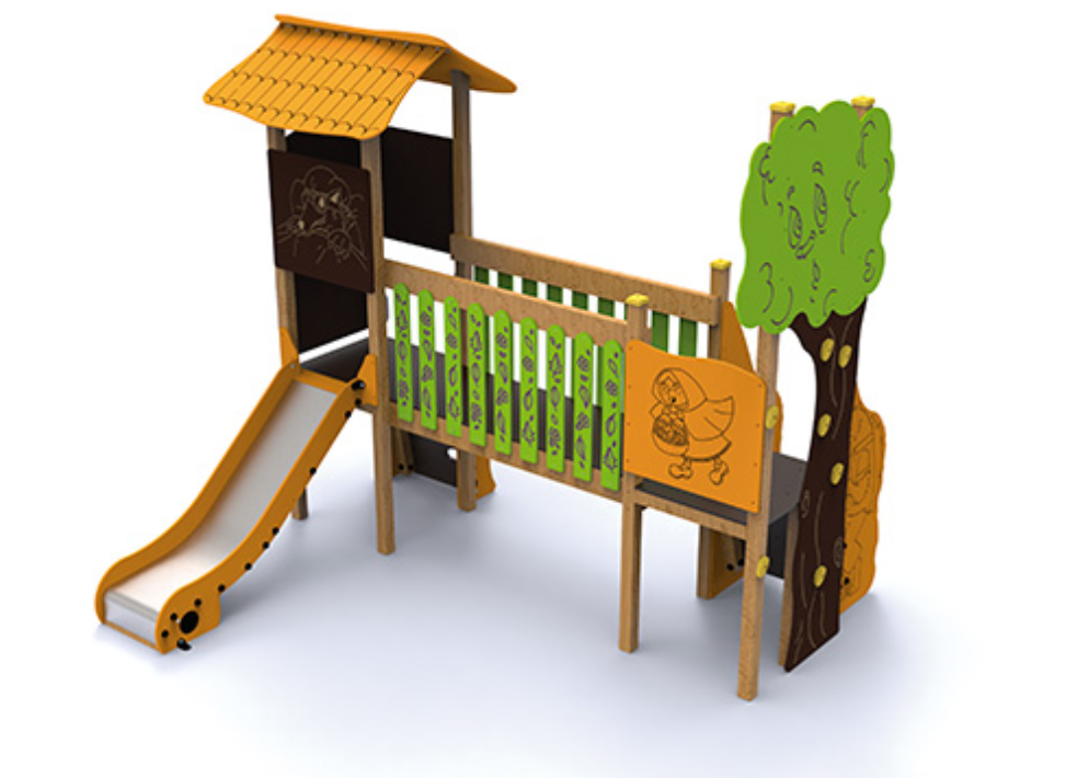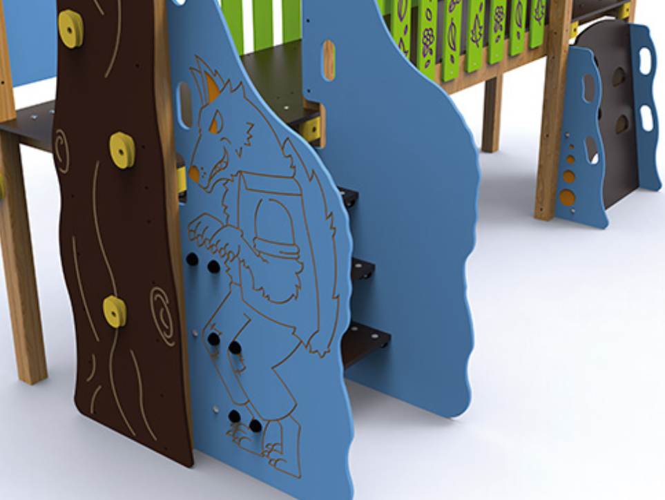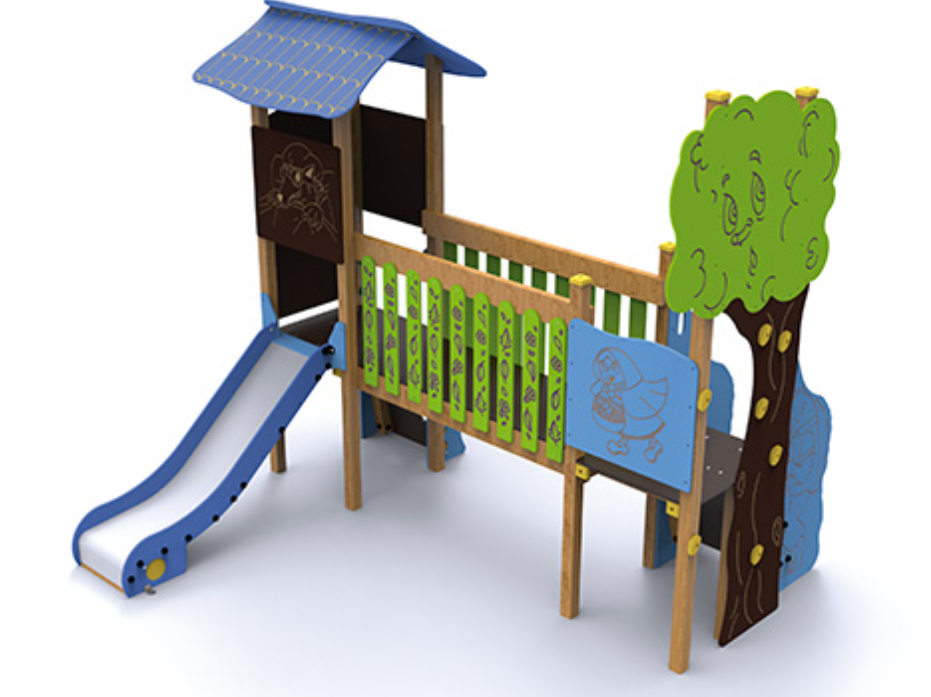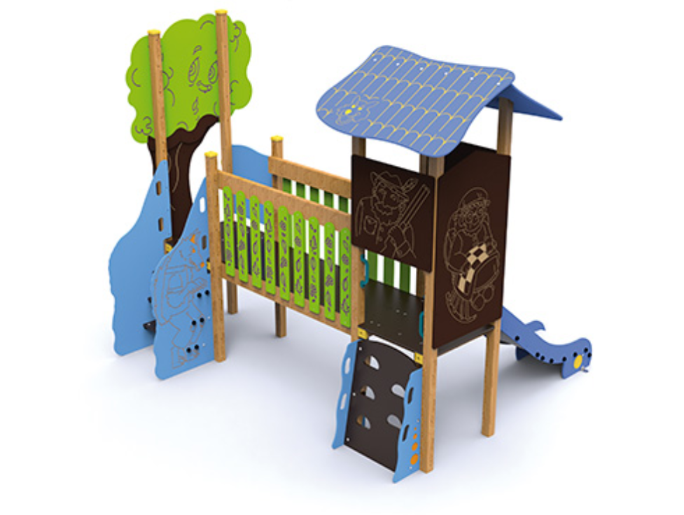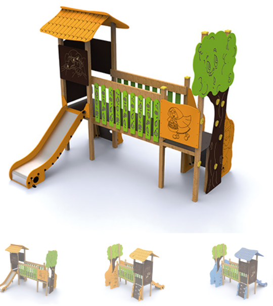 Bois autoclavé de classe IV et bois stratifié, polyéthylène, carrosserie, acier poudre et acier inoxydable.