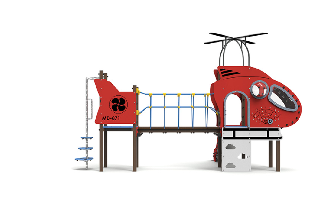 Bois d’ingénierie, polyéthylène, acier revêtu en poudre, acier inoxydable et dôme en polycarbonate transparent.