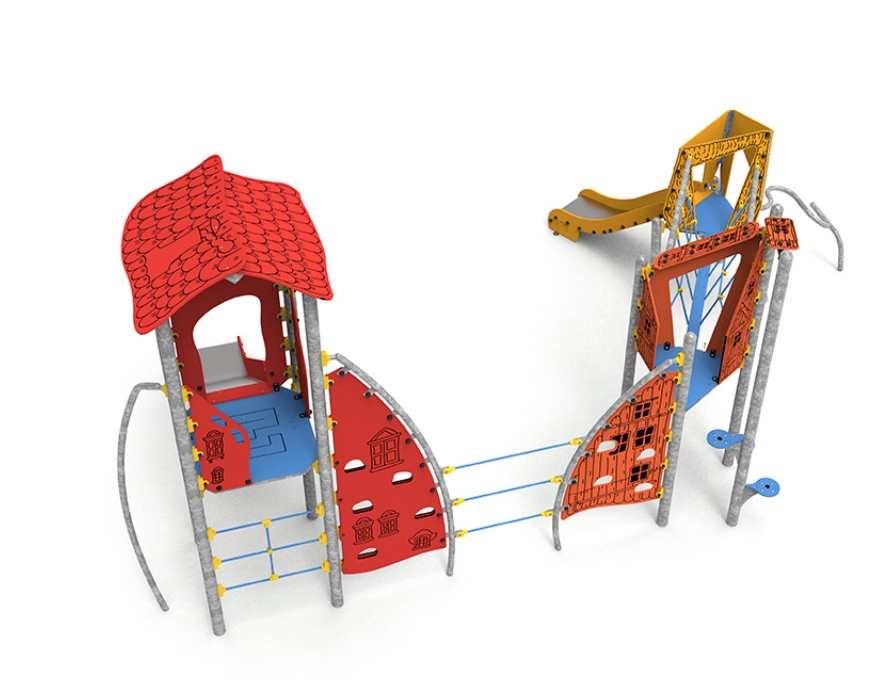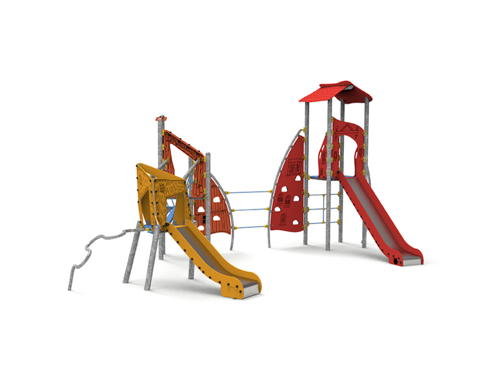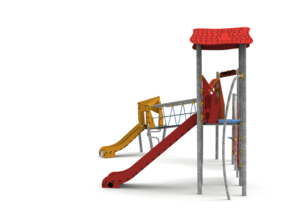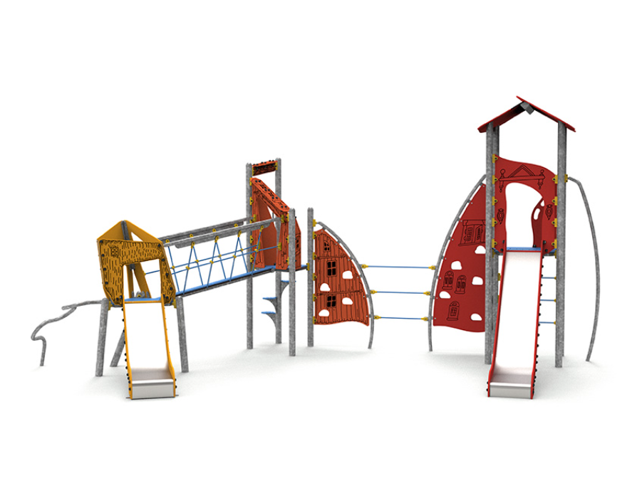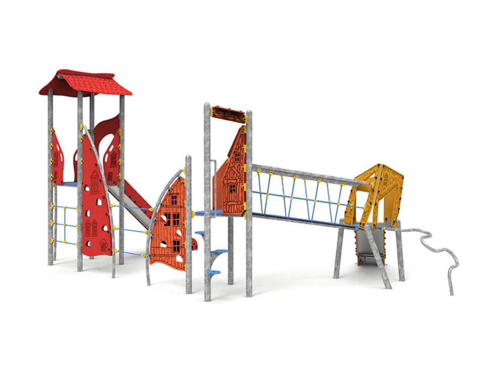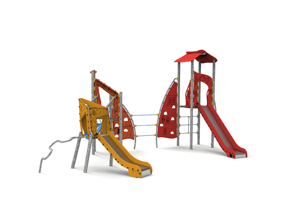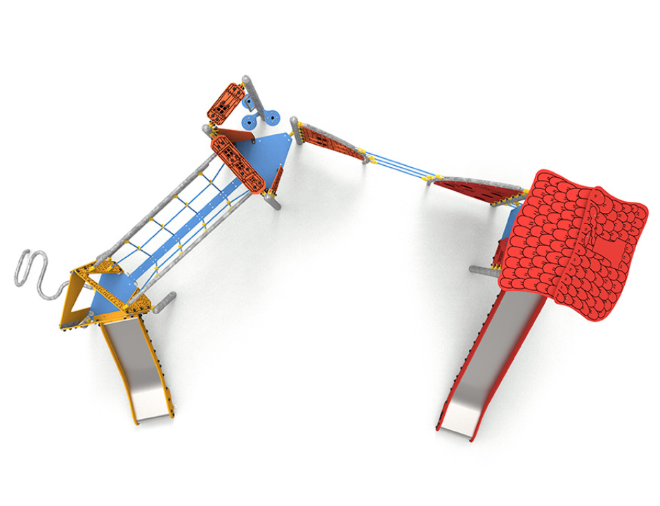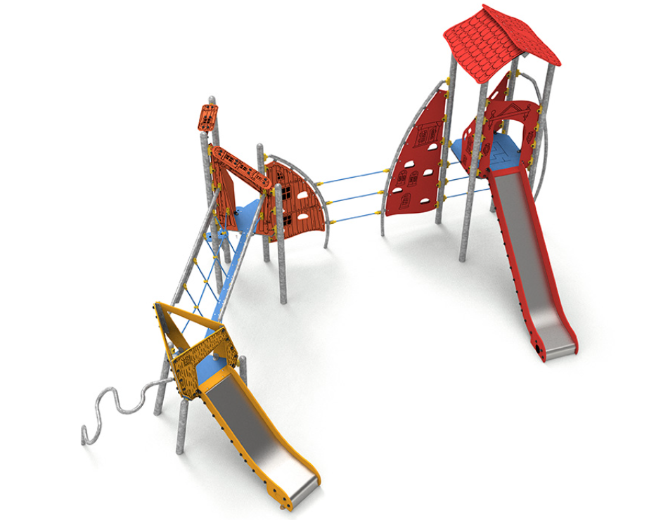 Acier galvanisé, polyéthylène, polyéthylène antidérapant, acier inoxydable et corde polyester multi filament.