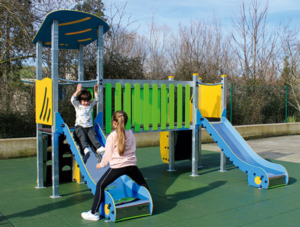 Une structure de jeu solide et fonctionnelle, conçue pour encourager l’activité physique et l’interaction. Fabriqué en acier galvanisé, carrosserie, polyéthylène et acier inoxydable, il garantit une durabilité maximale, une sécurité et une résistance aux intempéries.